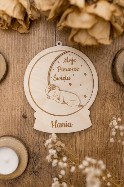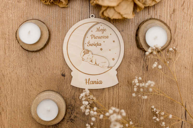 Przedstawiamy Wam wyjątkową Świąteczną Bombkę ze Sklejki, która nie tylko zdobi choinkę, ale także upamiętnia niepowtarzalne „Pierwsze Święta” Waszego małego skarbu! 🌟🎁