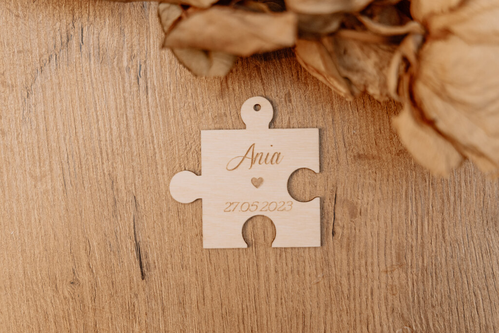 Odkryj nasz stylowy i unikalny brelok w kształcie puzzli, który jest doskonałym sposobem na dodanie osobistego akcentu do Twoich kluczy lub torby. Ten elegancko zaprojektowany brelok nie tylko jest praktycznym dodatkiem, ale dzięki personalizacji inicjałów i daty, staje się również wyjątkową pamiątką.