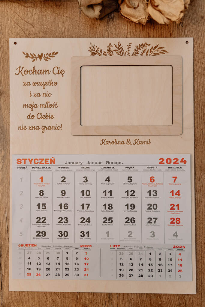 - Personalizacja z Imionami: Kalendarz zawiera opcję dodania imion pary, co czyni go wyjątkowo osobistym i symbolicznym prezentem.
