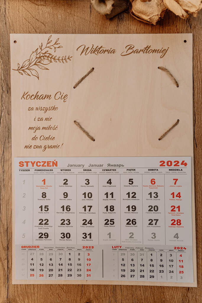 - Personalizacja z Imionami: Kalendarz zawiera opcję dodania imion pary, co czyni go wyjątkowo osobistym i symbolicznym prezentem.