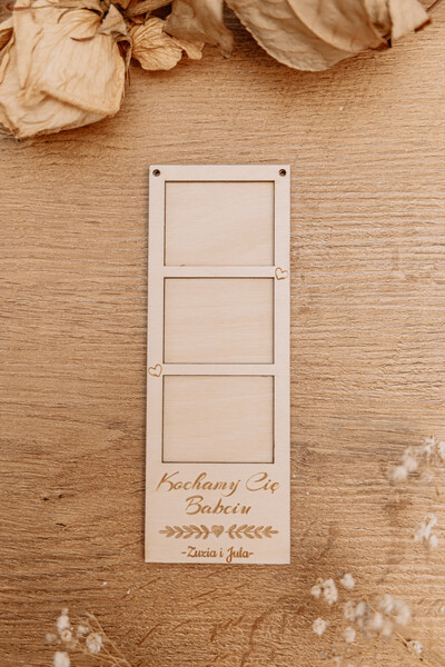 Przedstawiamy wyjątkową ramkę na zdjęcia, stworzoną specjalnie dla babci i dziadka, aby mogli cieszyć się wyjątkowymi chwilami spędzonymi z wnukami. Ta elegancka ramka umożliwia prezentację trzech ulubionych zdjęć, wzbogacona o możliwość dodania graweru z indywidualnym przesłaniem.