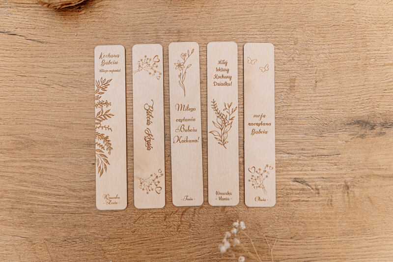 Przedstawiamy unikalną i elegancką zakładkę do książek, wykonaną ze sklejki, idealną dla każdego miłośnika książek, a szczególnie dla babci lub dziadka. Ta zakładka nie tylko jest praktyczna, ale również pełna osobistego charakteru dzięki możliwości personalizacji.